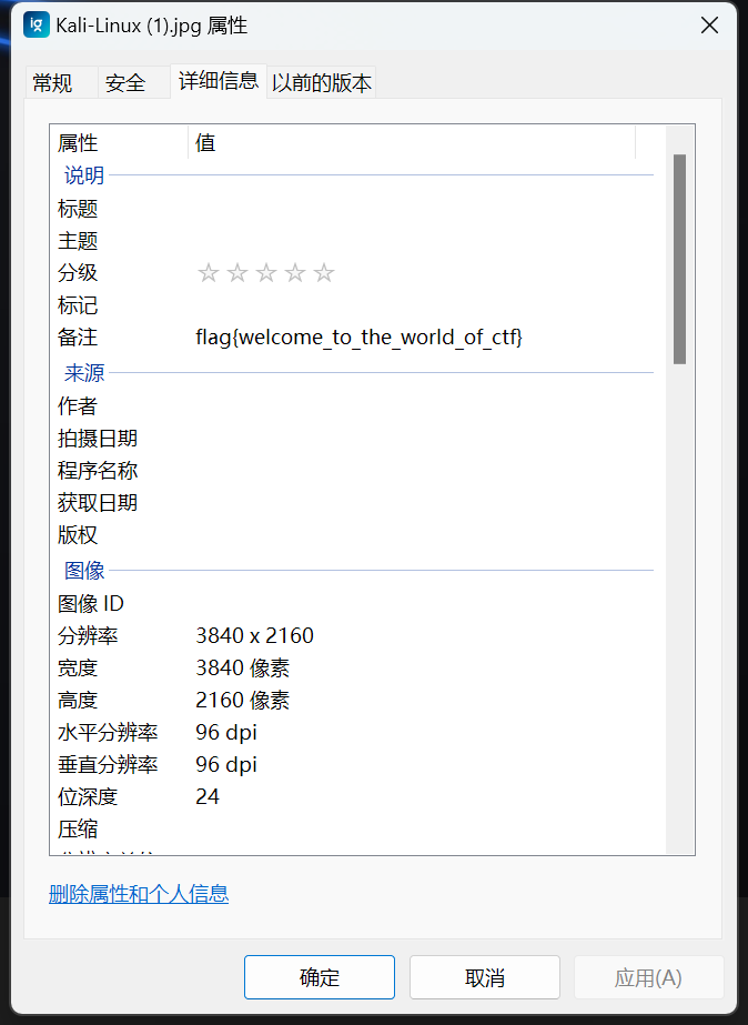 下载图片后右键查看属性,发现图片的注释就是flag