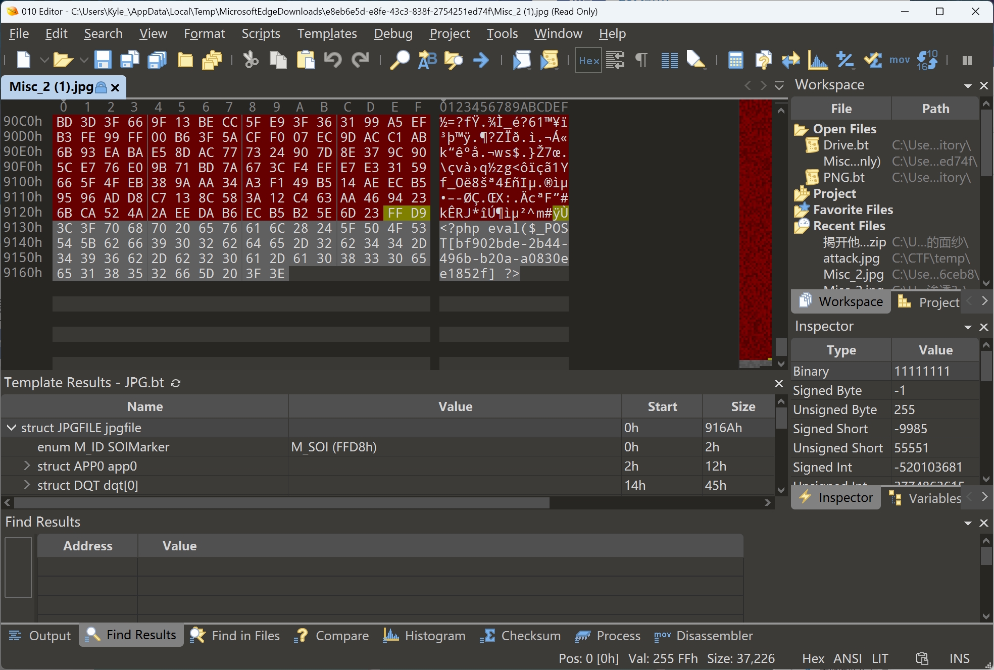下载图片后用010 Editor打开,发现最后有一段PHP代码,是一句话木马,POST参数就是flag内容