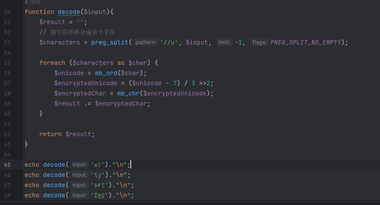 简单编写解码函数 获得四个密文的明文