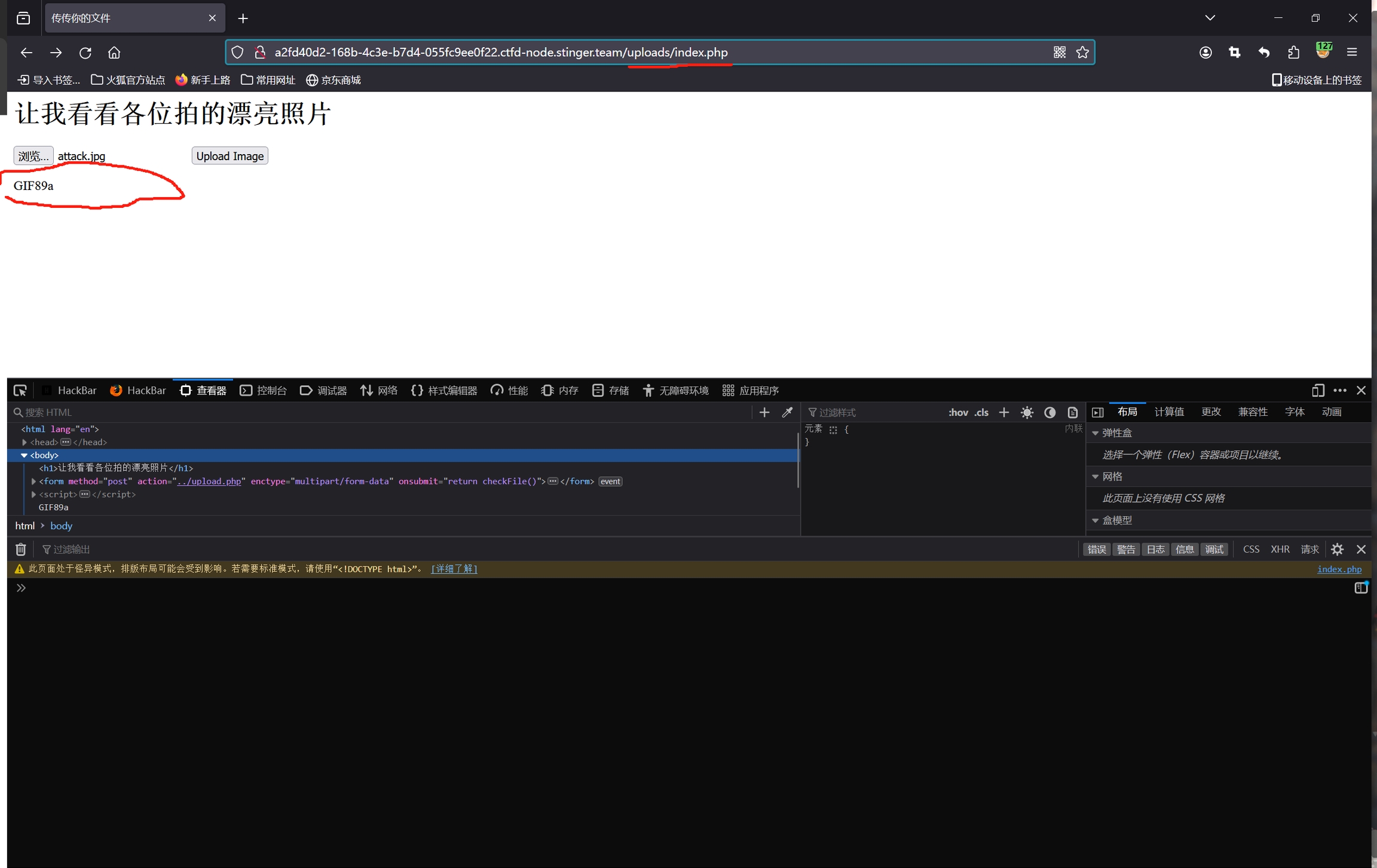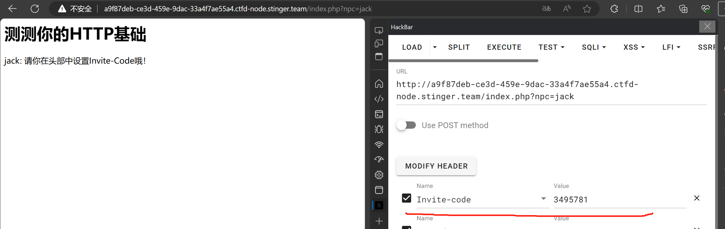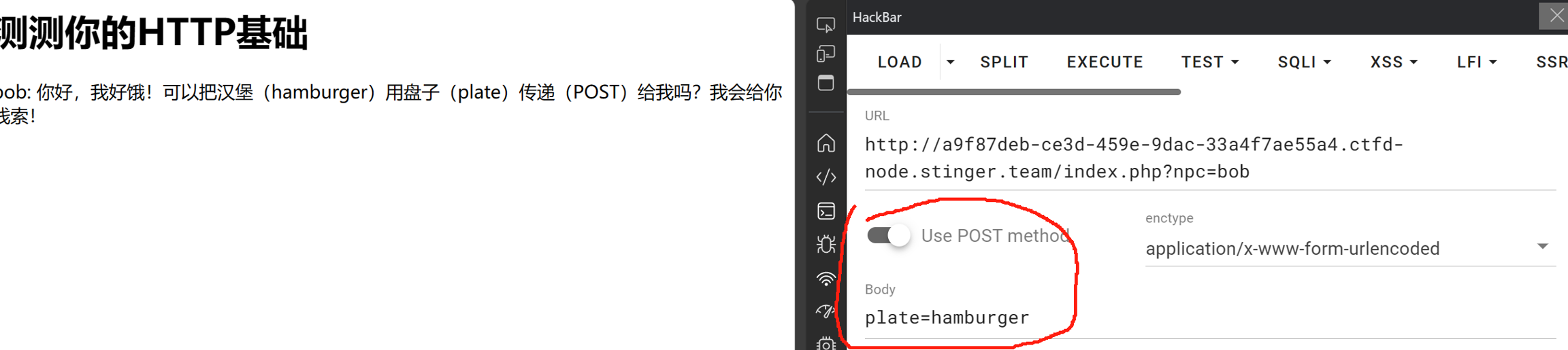 第三步:POST传参,使用Hackbar或其他工具POST传递指定参数和内容