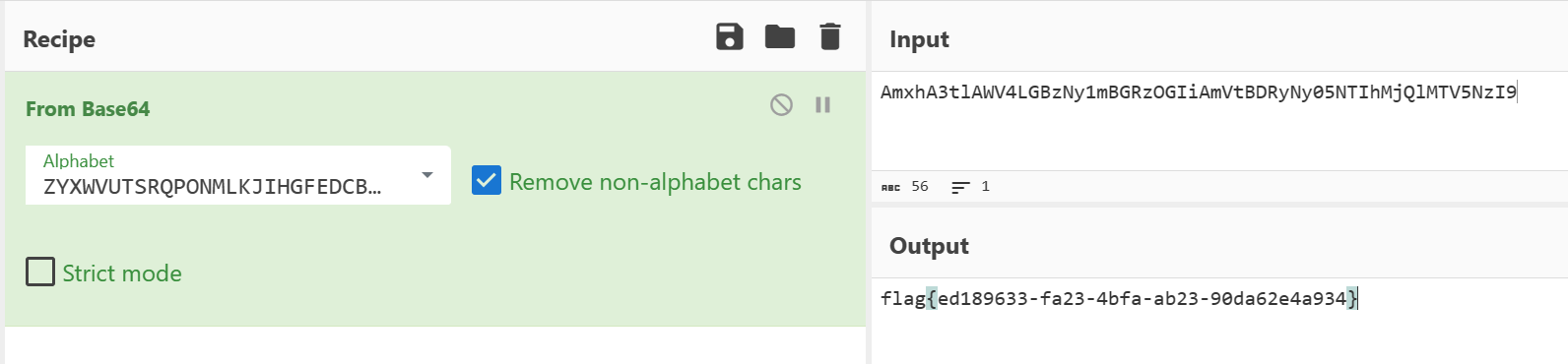 尝试使用自定义字符集解码字符串,得到flag