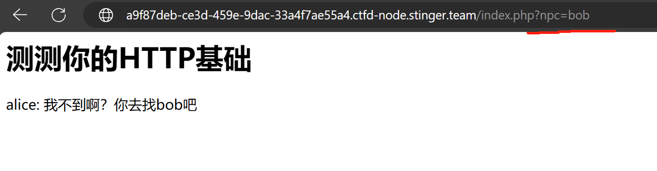 第一步:修改GET参数中npc的值为alice