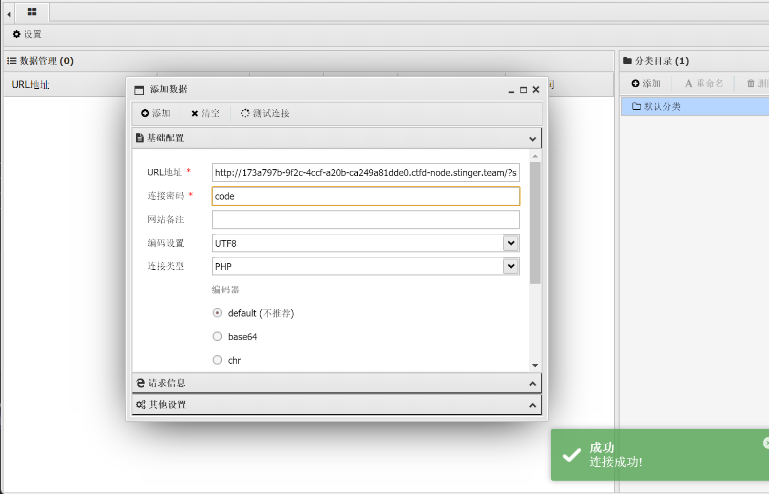 构造payload传参,进行蚁剑连接(或者手搓命令执行)